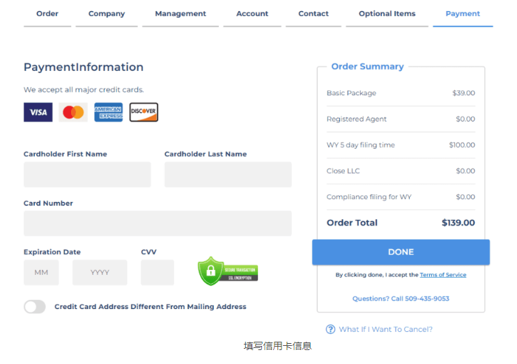 以WY州公司为例,想注册其他州的也可自行选择。需要的资料为你的地址(中国地址都可)、你的邮箱、你的电话号码(国内号码都行)、双币信用卡(国内卡也可)。